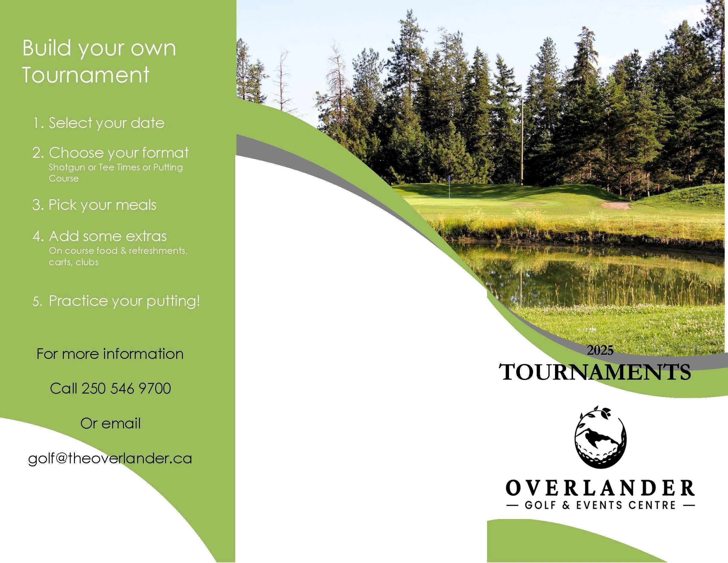Located in beautiful Armstrong, B.C., Overlander Golf & Events Centre is the perfect setting for you to host your next tournament. At Overlander we will help your group come up with the right tournament package.